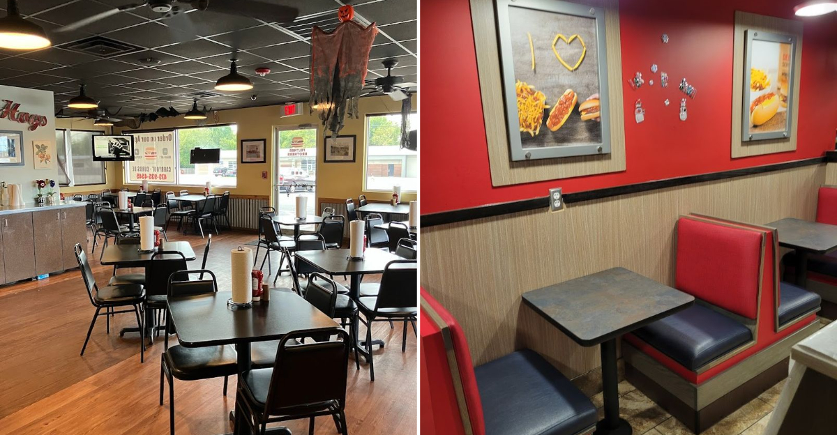 The interior has a fun, casual vibe that feels comfortable for families, quick lunch stops, and anyone who just needs a solid meal without a lot of fuss.
