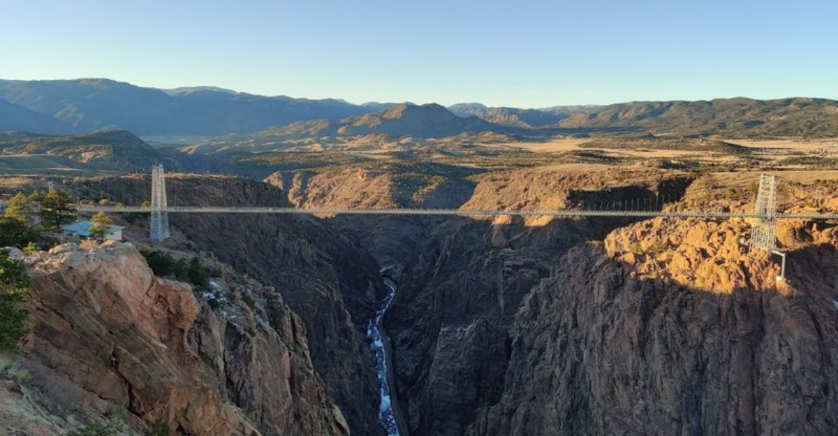 Numbers do not mean much until the ground disappears beneath you. It stretches 1,260 feet across and hangs approximately 955 feet above the Arkansas River, making it one of the highest suspension bridges in the world and a genuine landmark that earns every superlative thrown at it.