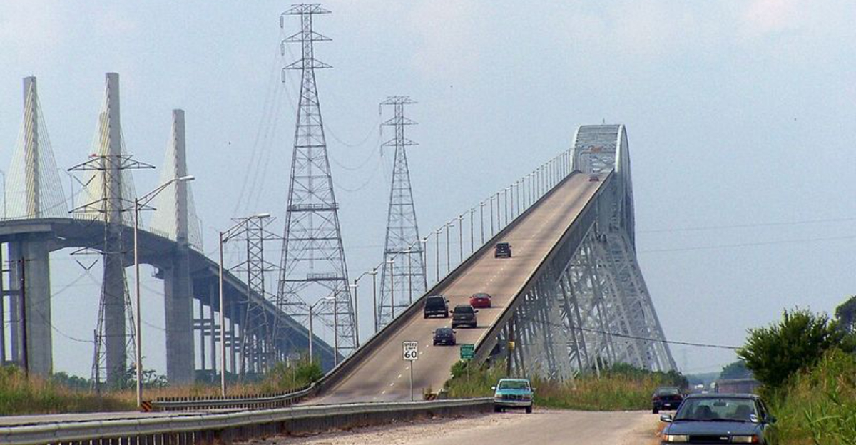 This bridge rises so sharply above the Neches River that your brain has a brief moment of negotiation: “Are we sure this is a road and not a dare?”
