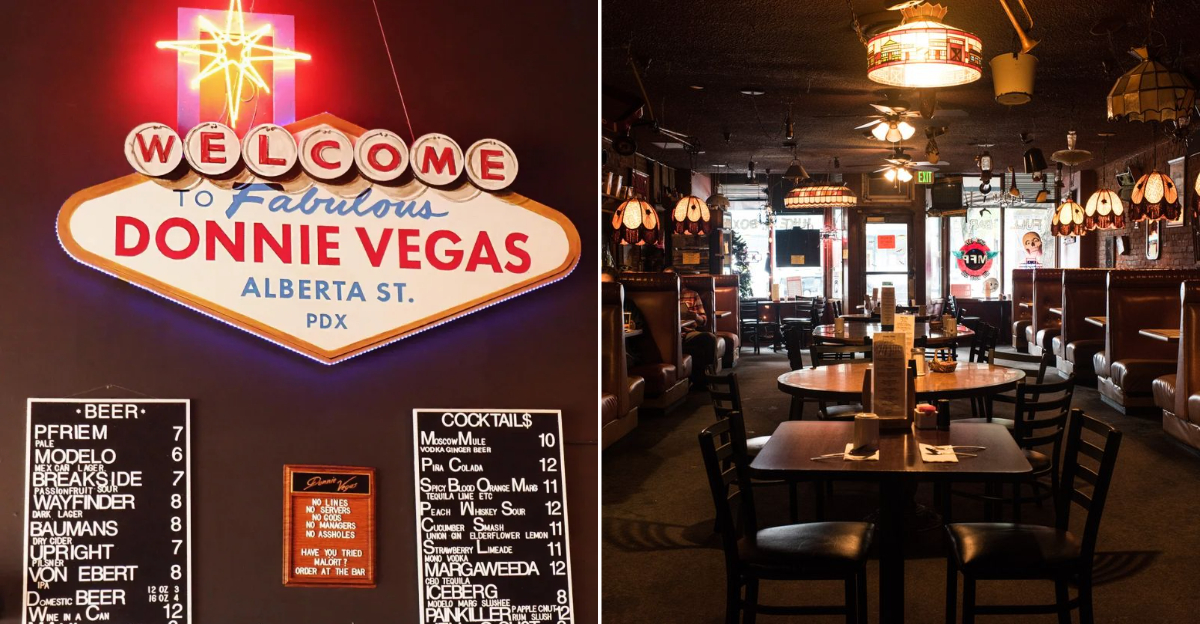 Neon pink lights guided me to Donnie Vegas on a quiet Tuesday when I desperately needed both a cocktail and comfort food. This tiny Alberta Street spot somehow combines the vibes of a Vegas casino bar with a Portland hipster joint, resulting in pure magic.