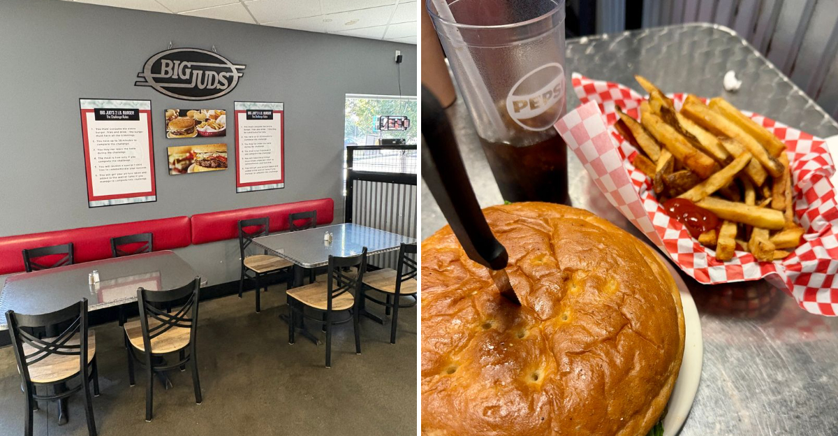 Big Jud’s famous one-pound burger isn’t just food—it’s an experience that turns ordinary lunch breaks into legendary stories.