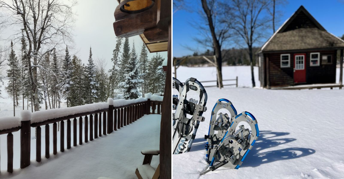 Some resort information varies online, but the cabin rentals are listed as open year-round, and winter guests commonly visit for snowmobiling, ice fishing, and scenic cold-weather escapes.