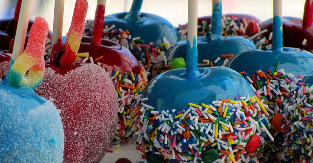 One look and you are eight again, plotting the perfect bite. Candy apples shine like lacquered ornaments, a sugar shell that snaps clean over a crisp tart apple.