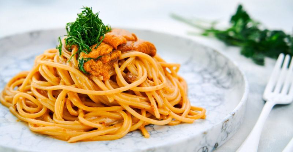 Sea urchin pasta transforms humble noodles into oceanic luxury. The creamy, briny uni (sea urchin roe) melts into warm pasta, creating a natural sauce that tastes like the essence of the sea itself.