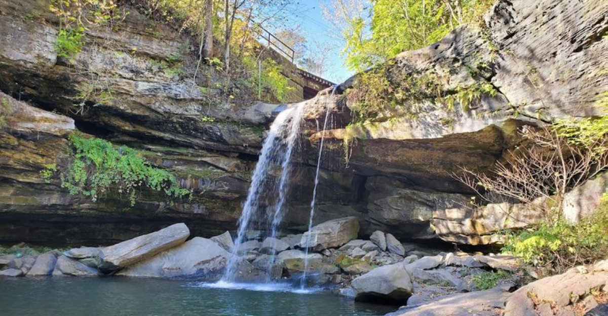 Raccoon Creek State Park in Beaver County holds a quiet surprise along its Mineral Springs Trail: Frankfort Mineral Springs Falls, a compact but genuinely dramatic little waterfall that punches well above its size.