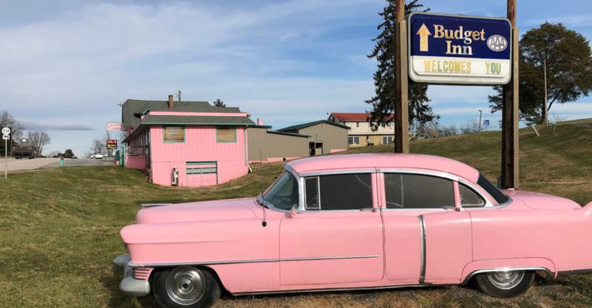 The Pink Cadillac Diner sits at 4347 S Lee Hwy, Natural Bridge, VA 24578, tucked like a postcard on the edge of the road. The building wears its bubblegum suit with total confidence, a beacon for anyone who still believes a diner can change your day.