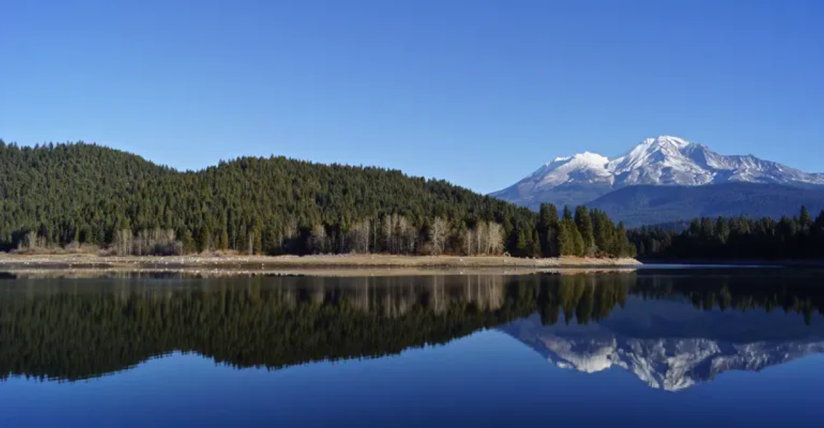 Lake Siskiyou wraps around itself like a liquid necklace, offering families the perfect 6.5-mile adventure with Mount Shasta reflecting in its waters.