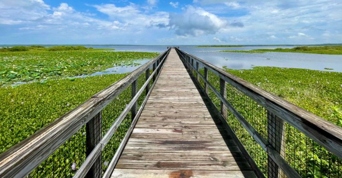 Step onto La Chua Trail and the prairie turns theatrical. Boardwalk planks hum underfoot, and the marsh opens like a stage crowded with egrets, herons, and the slow armor of alligators.
