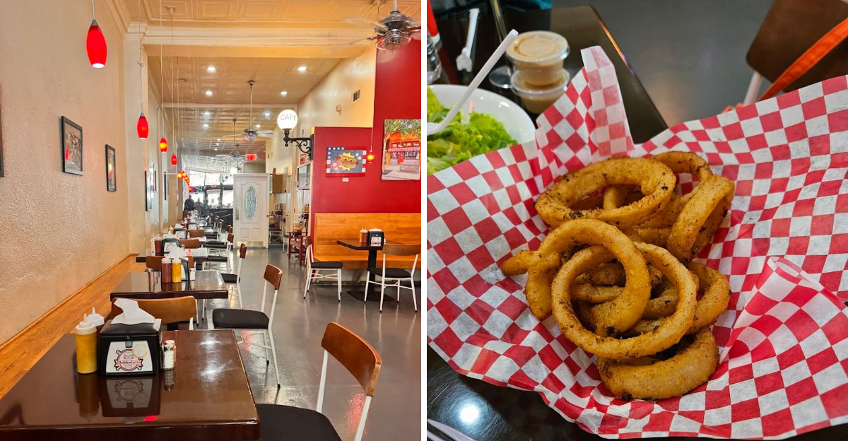 The onion rings come out hot, crisp, and impossible to ignore. You take one bite and suddenly your whole plan for the day shifts. Stay a little longer. Order something else.