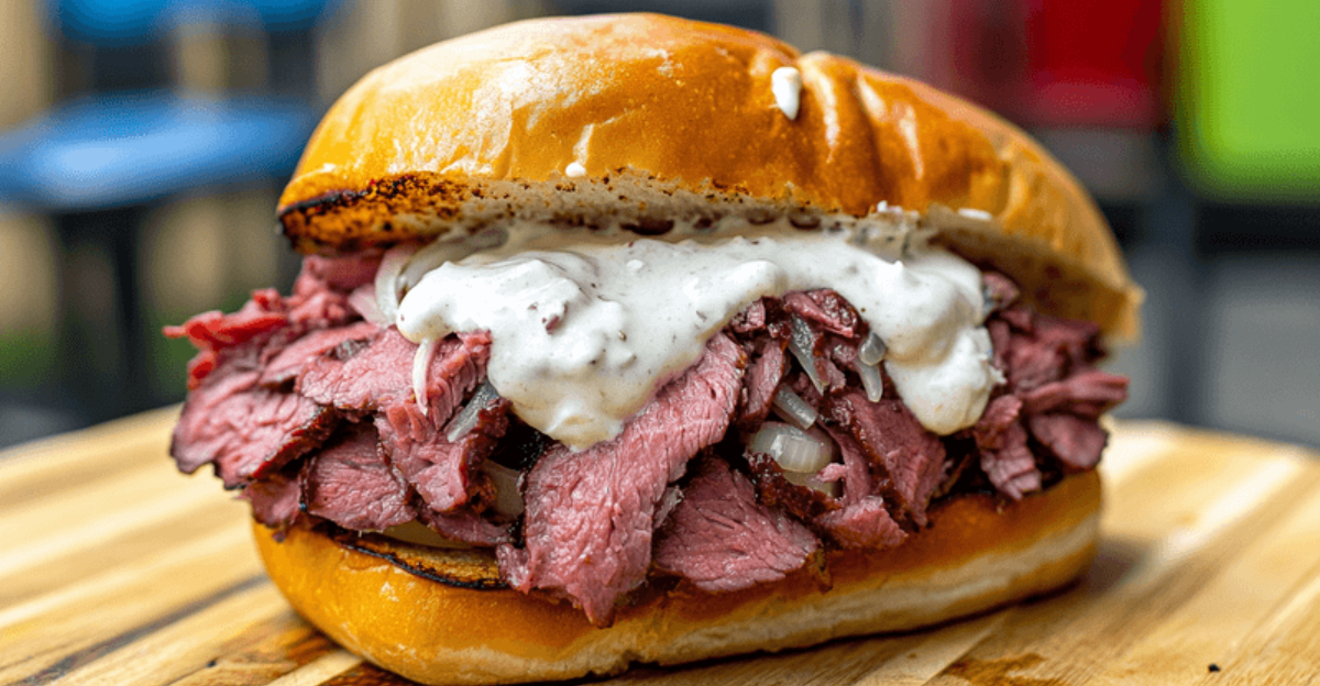 While deeply rooted in Kentucky’s rich culinary traditions, the irresistible allure of this pit beef sandwich has traveled far beyond state lines, drawing curious food lovers and devoted barbecue enthusiasts from every direction.