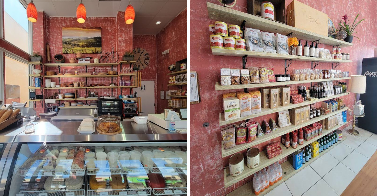 Once inside, the shift is immediate. The shelves are stocked with Italian imports, the counter holds fresh-made products, and the whole space carries a different energy than anything else on the block.