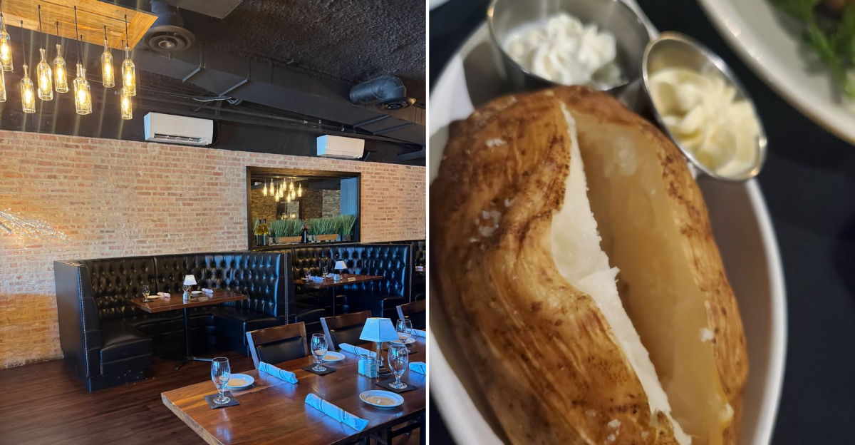 If a baked potato can steal the show at a steakhouse, something unusual is already in motion. In this corner of Illinois, the kitchen treats the humble spud with the same attention given to prime cuts, baked long enough to fluff the center into steam-soft layers while the skin turns lightly crisp and salted.
