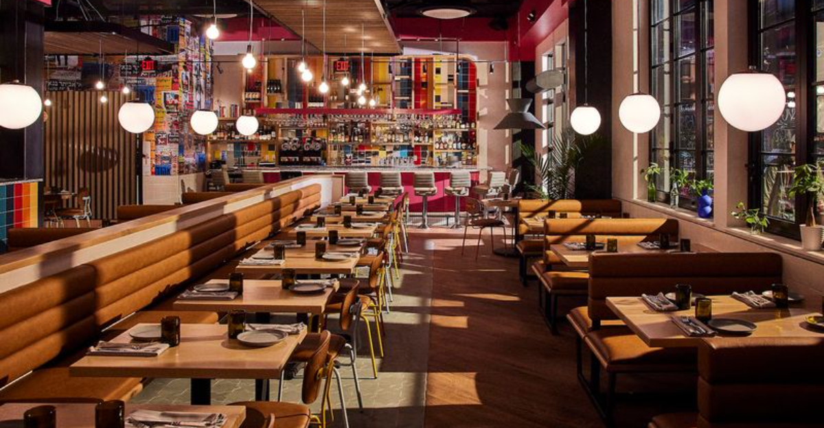 Dizengoff leans into that energy with a bright, open interior that feels lively without being loud. Seating fills up fast, especially on weekends.